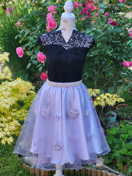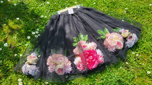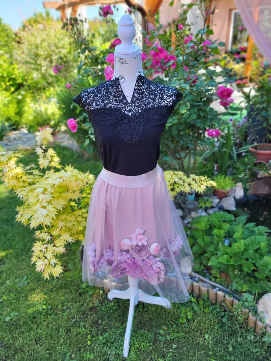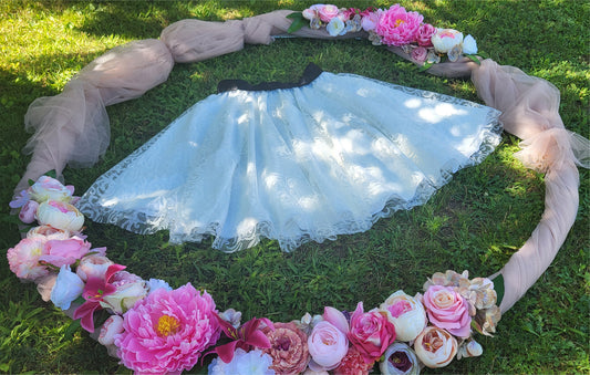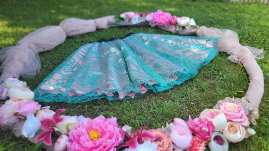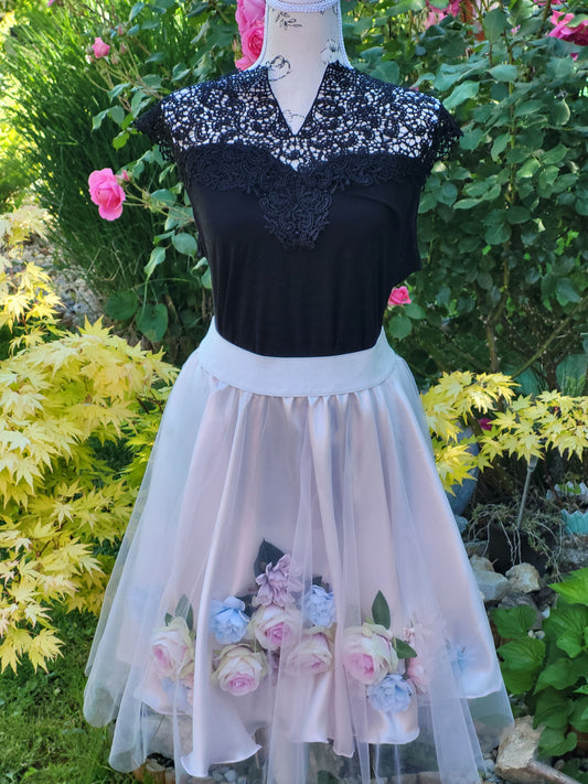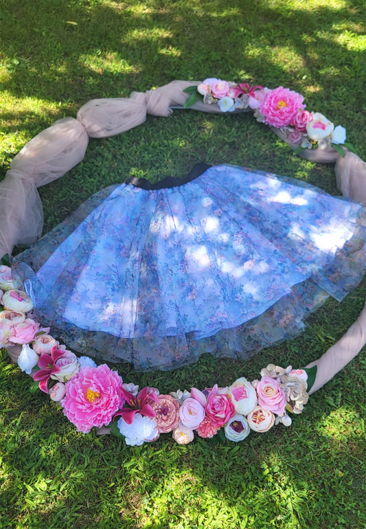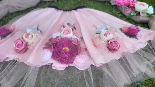 Tündérkert szépsége - púder elasztikus szatén virágözön